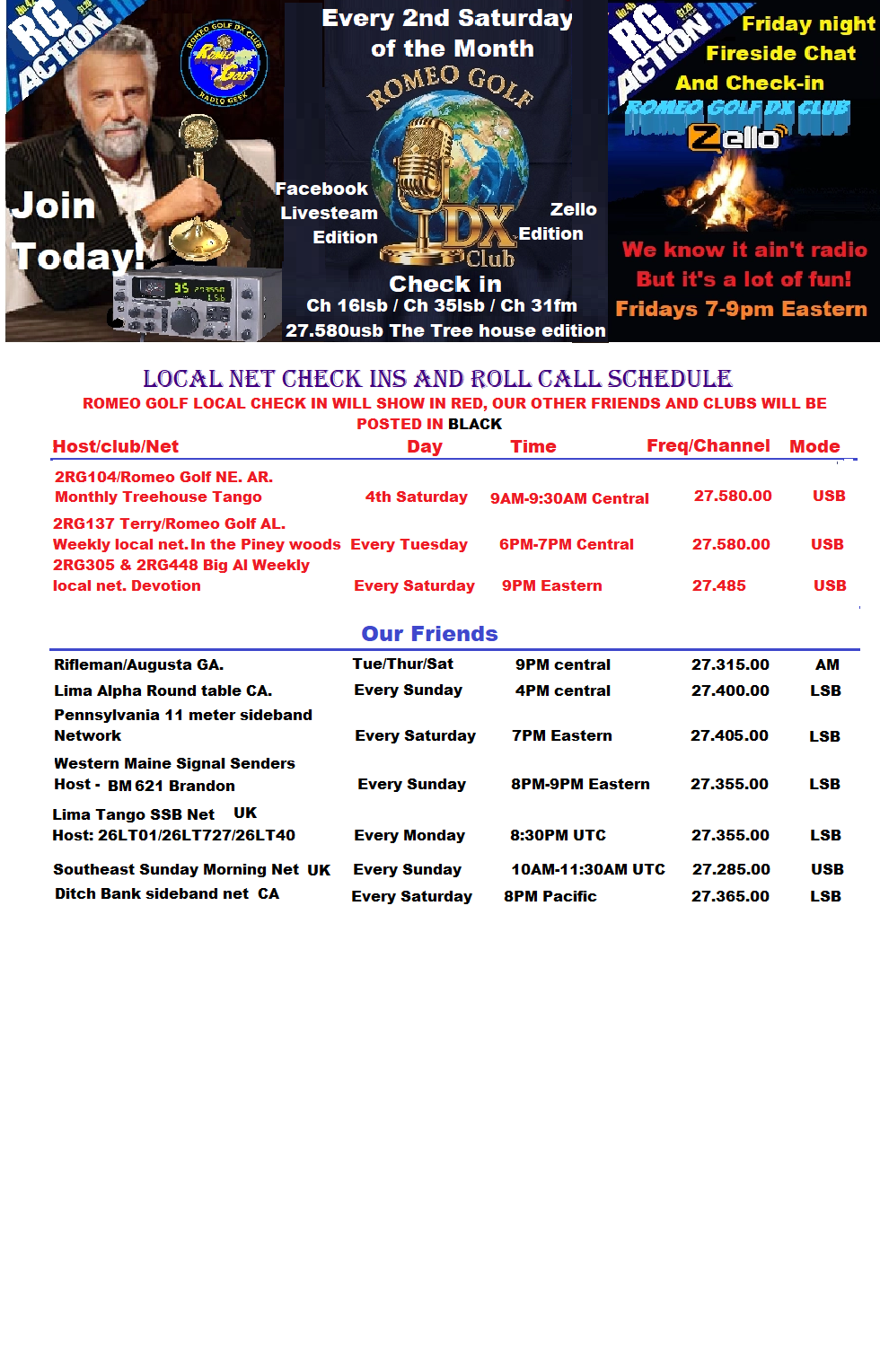 Listing of Romeo Golf and other clubs weekly, nightly and monthly check-ins ..
