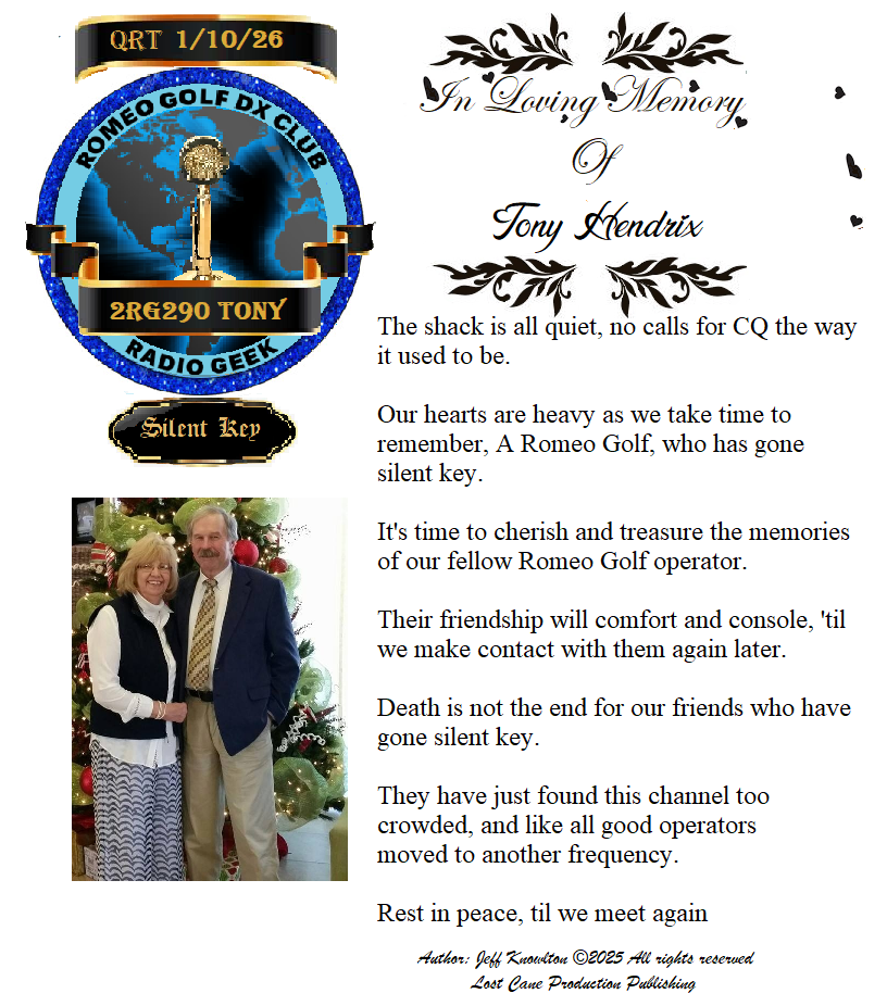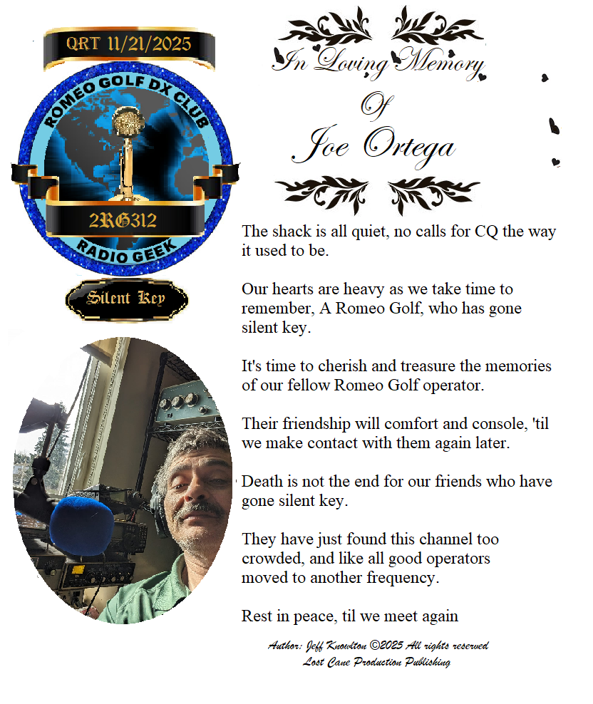 Our hearts are heavy as we take time to remember, A Romeo Golf, who has gone silent key.